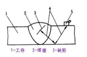 超声波束由探头发出,传到金属中,当超声波束传到金属与空气界面时,它就折射而通过焊缝。